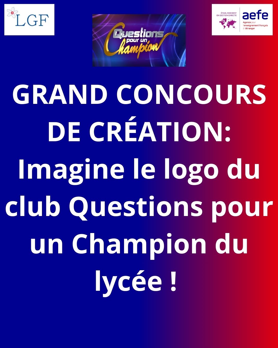 Imagine le logo du club Questions pour un Champion du lycée ! Le club Questions pour un Champion du lycée Gustave Flaubert lance un grand concours de création de...